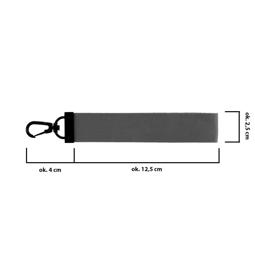 Brelok w formie elastycznej tasiemki z poliestru z metalowym zapięciem. Idealny przedmiot do plecaka , torby podróżnej , kluczy lub jako wykończenie zamka błyskawicznego kurtki. Brelok posiada nadrukowane elementy z imieniem.