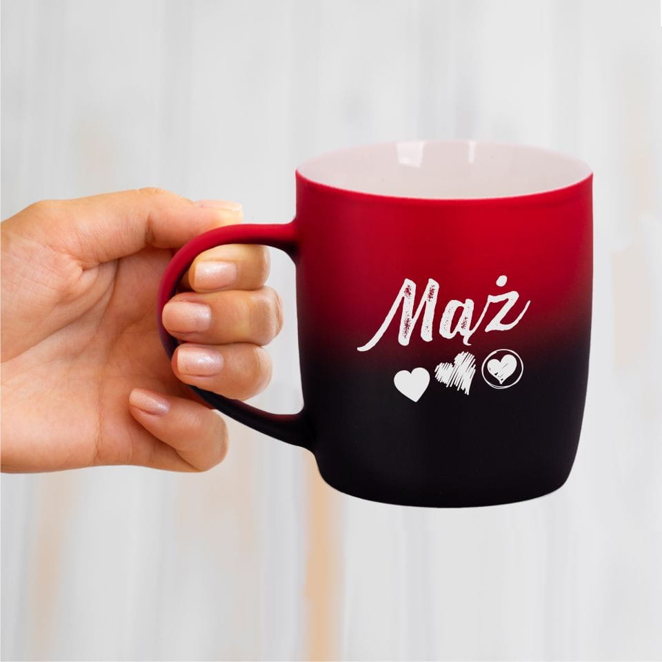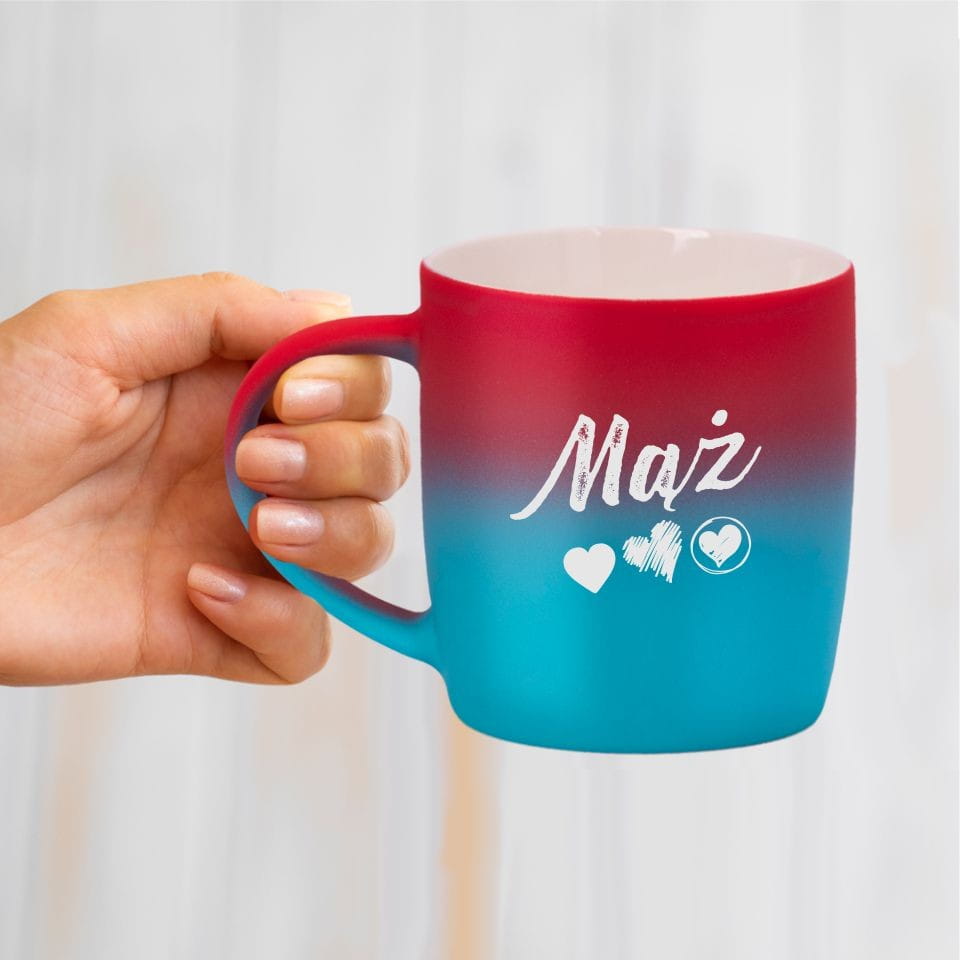 Jego zewnętrzna warstwa koloru przechodzi z jasnej w ciemną. Wnętrze jest jednokolorowe. Kubek jest matowy, miły w dotyku, z wygodnym uchwytem. Nadruk wykonany jest metodą laserową, a kolor graweru to biały.