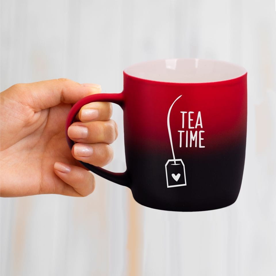 Jego zewnętrzna warstwa koloru przechodzi z jasnej w ciemną. Wnętrze jest jednokolorowe. Kubek jest matowy, miły w dotyku, z wygodnym uchwytem. Nadruk wykonany jest metodą laserową, a kolor graweru to biały.