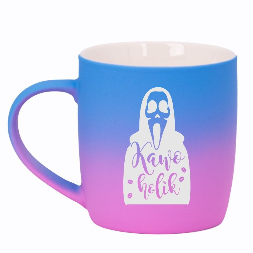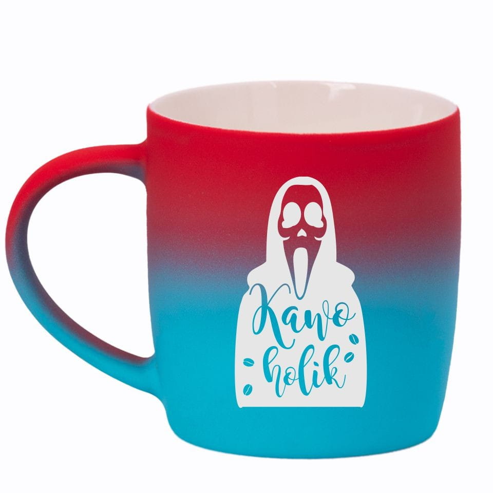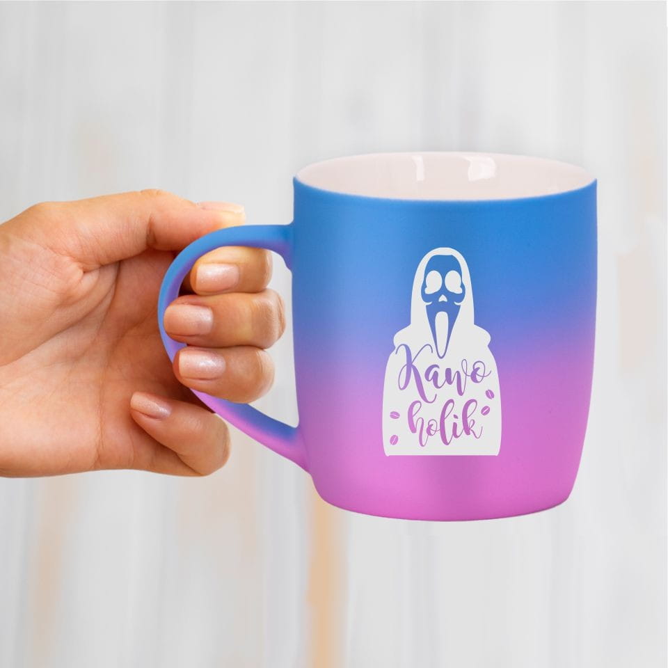 Jego zewnętrzna warstwa koloru przechodzi z jasnej w ciemną. Wnętrze jest jednokolorowe. Kubek jest matowy, miły w dotyku, z wygodnym uchwytem. Nadruk wykonany jest metodą laserową, a kolor graweru to biały.