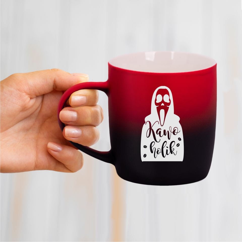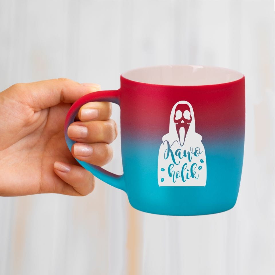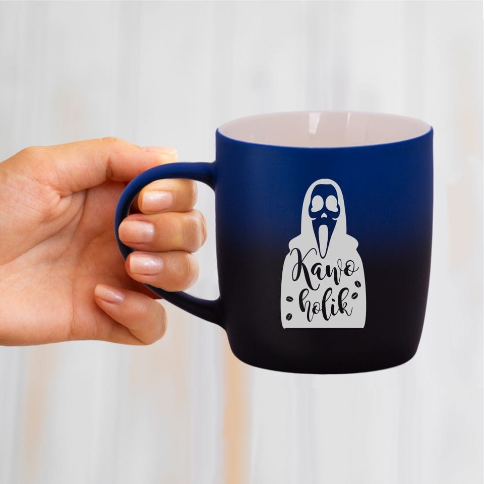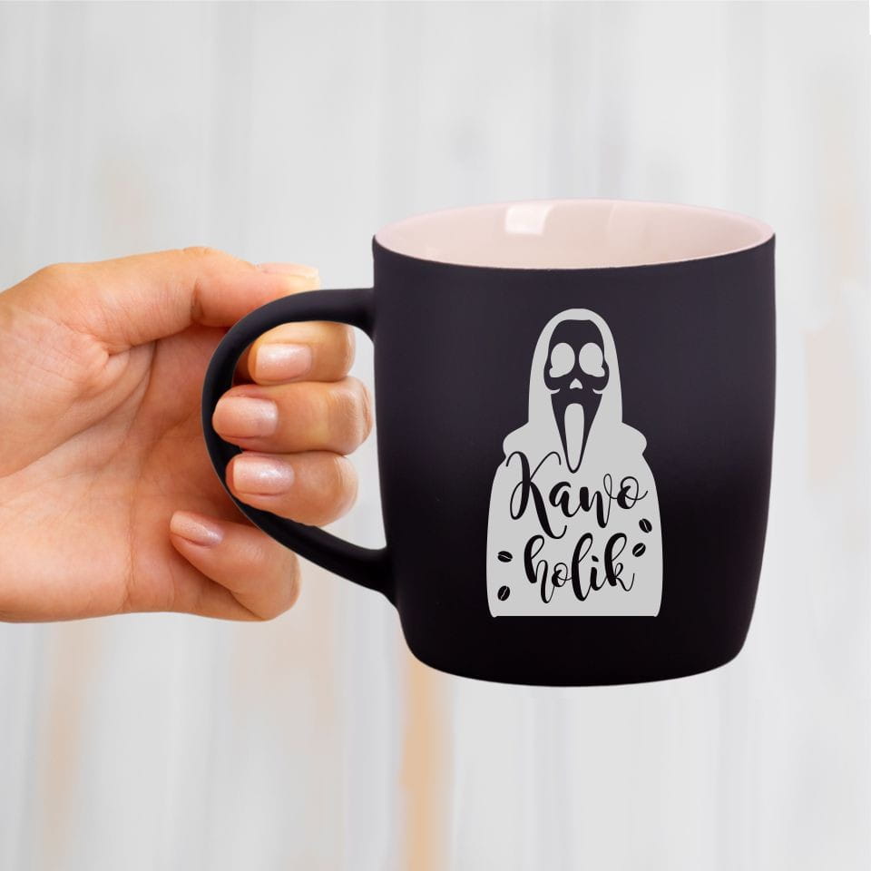 Jego zewnętrzna warstwa koloru przechodzi z jasnej w ciemną. Wnętrze jest jednokolorowe. Kubek jest matowy, miły w dotyku, z wygodnym uchwytem. Nadruk wykonany jest metodą laserową, a kolor graweru to biały.