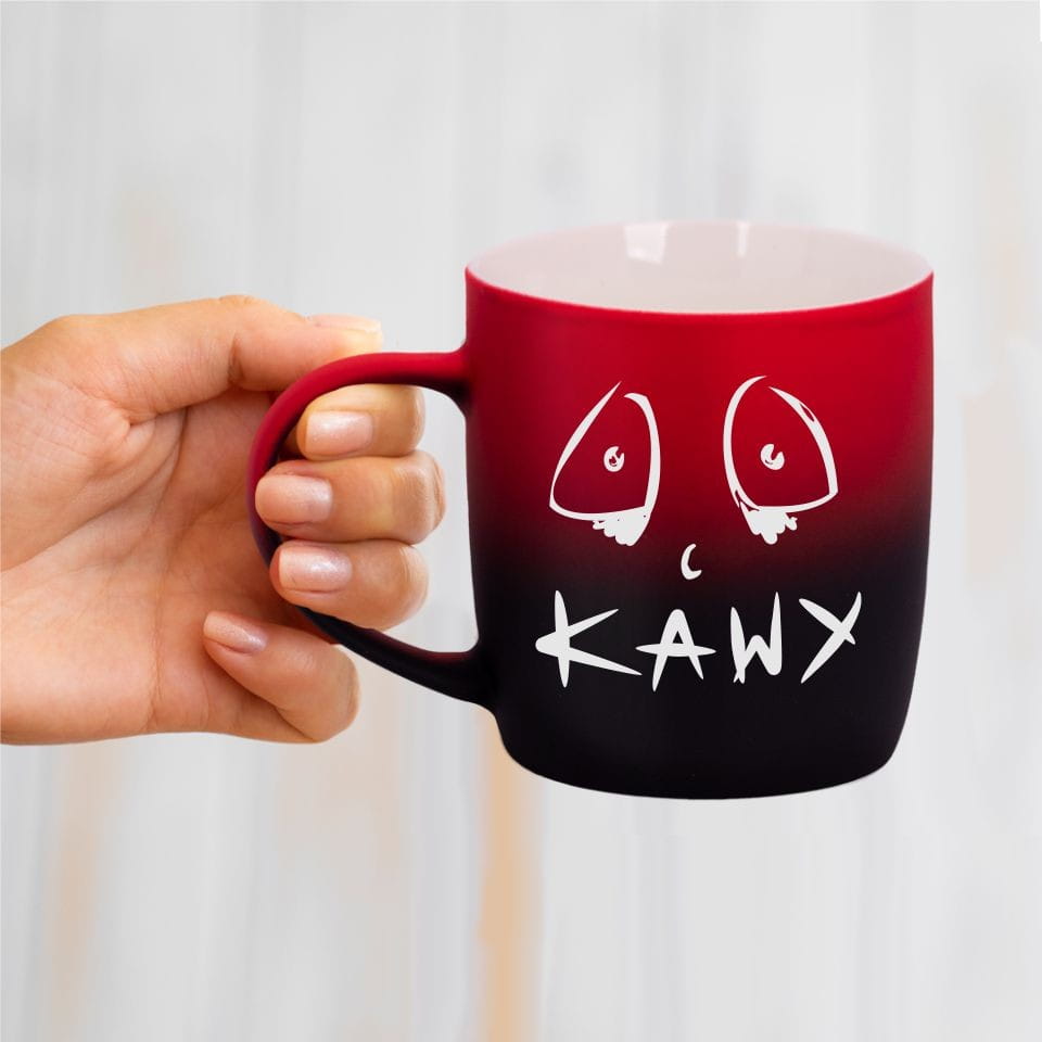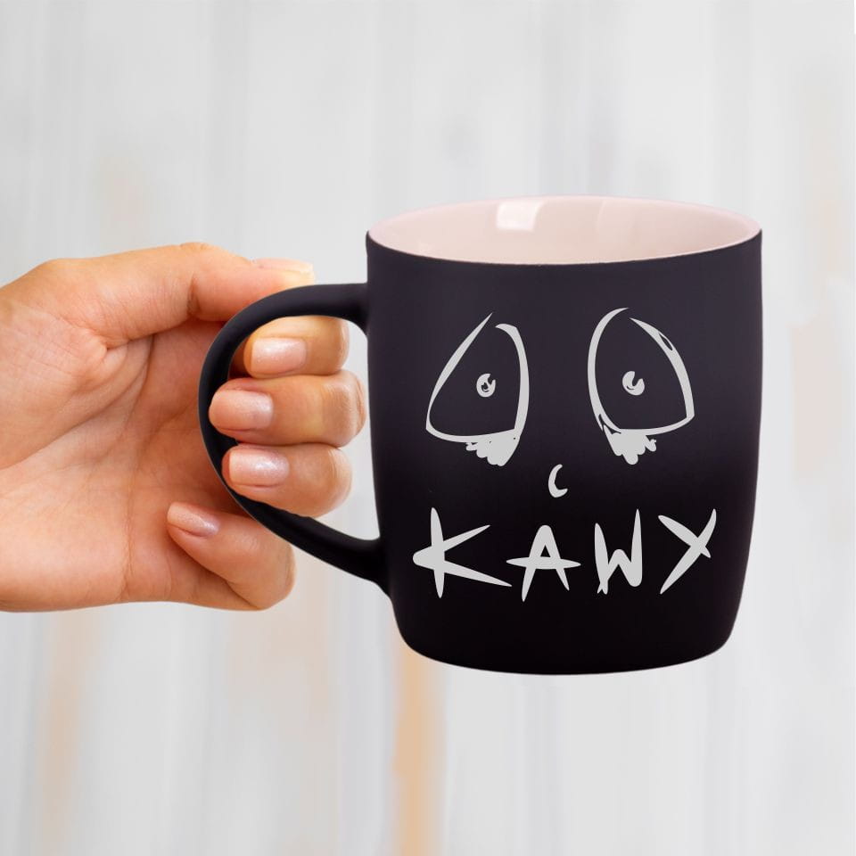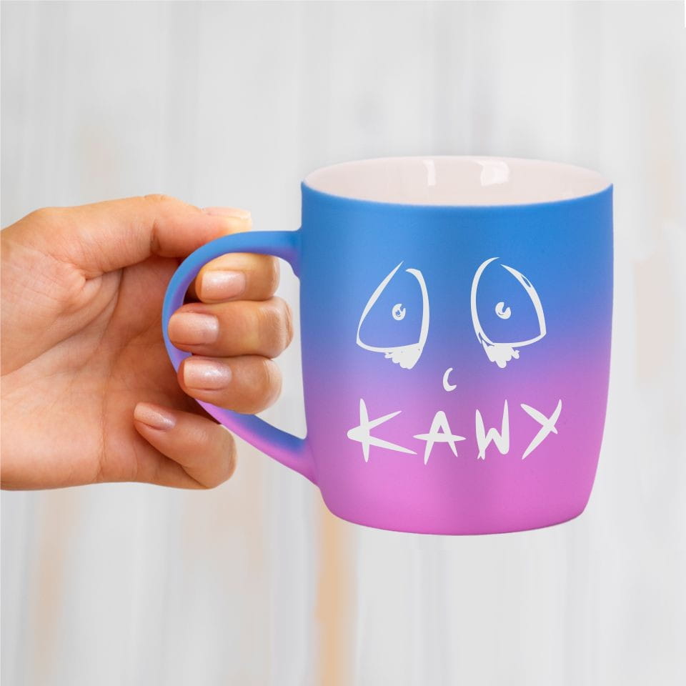 Jego zewnętrzna warstwa koloru przechodzi z jasnej w ciemną. Wnętrze jest jednokolorowe. Kubek jest matowy, miły w dotyku, z wygodnym uchwytem. Nadruk wykonany jest metodą laserową, a kolor graweru to biały.