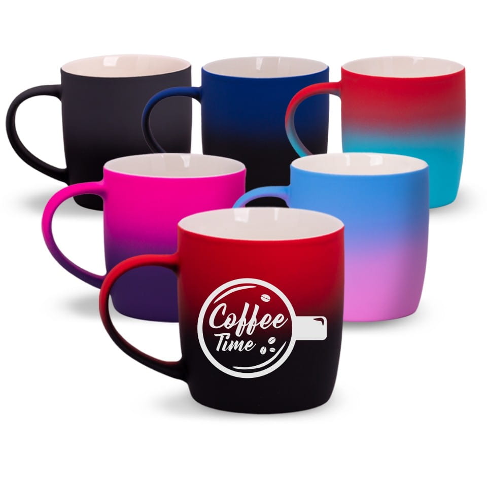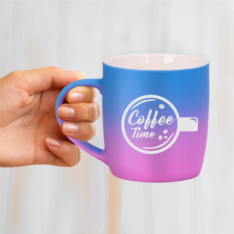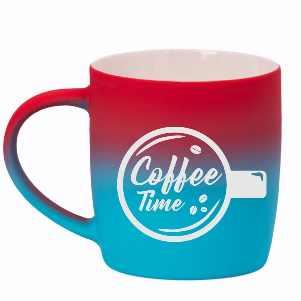 Jego zewnętrzna warstwa koloru przechodzi z jasnej w ciemną. Wnętrze jest jednokolorowe. Kubek jest matowy, miły w dotyku, z wygodnym uchwytem. Nadruk wykonany jest metodą laserową, a kolor graweru to biały.