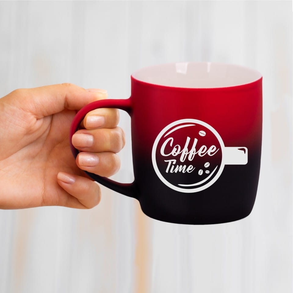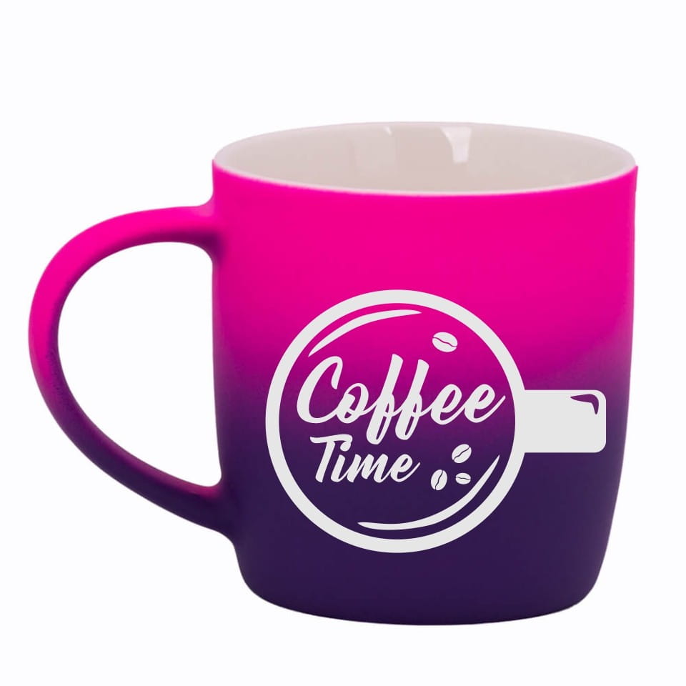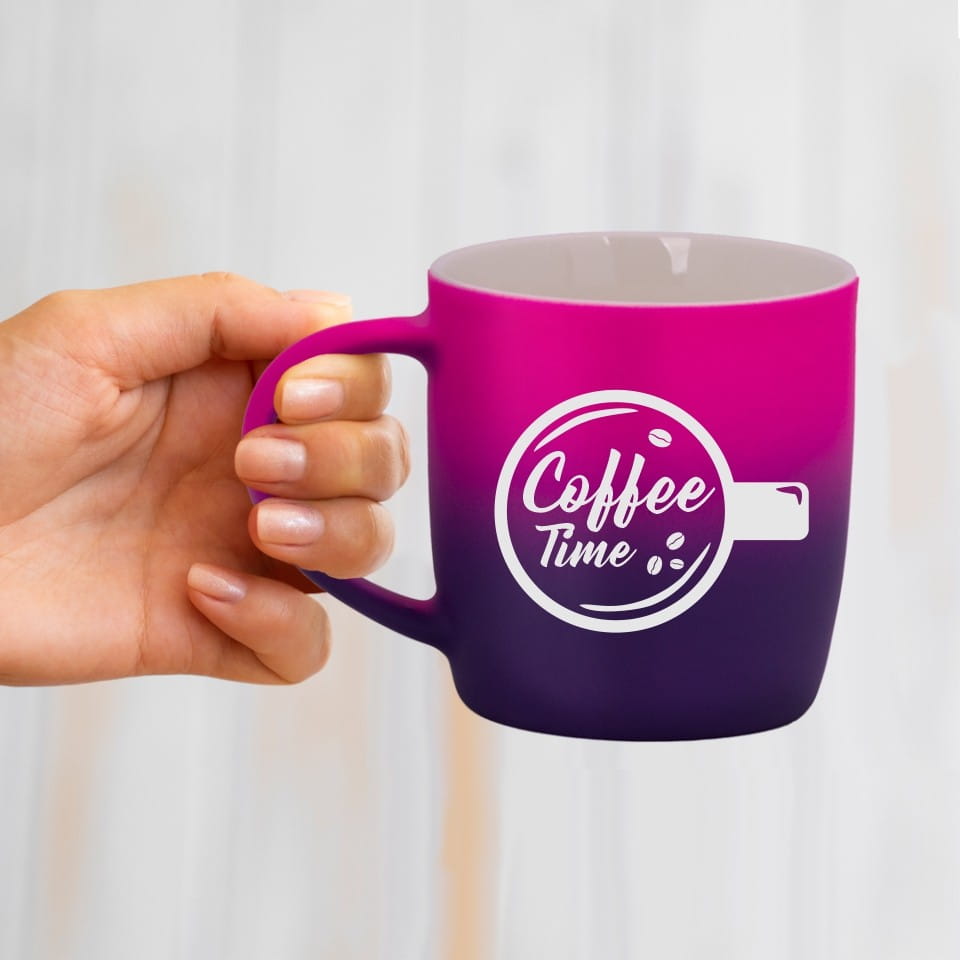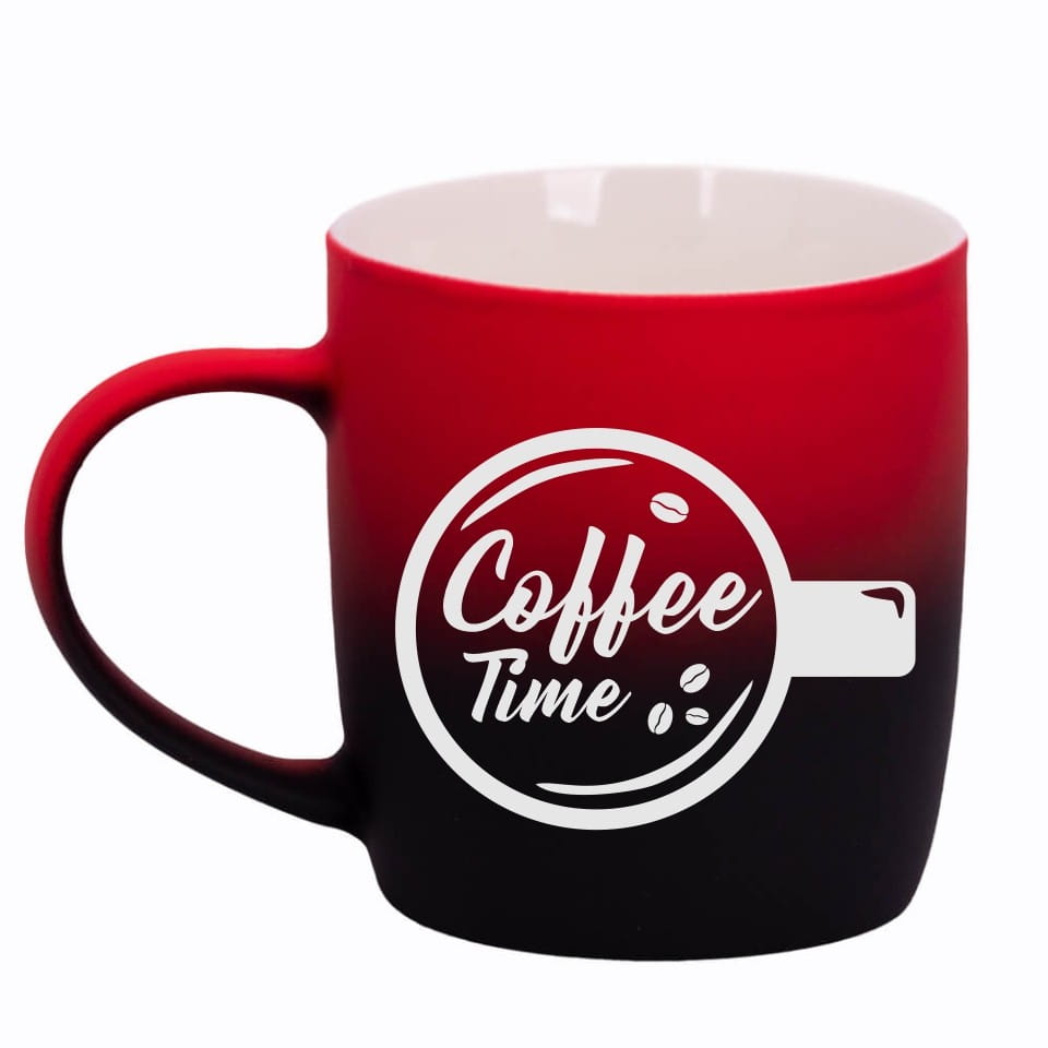 Jego zewnętrzna warstwa koloru przechodzi z jasnej w ciemną. Wnętrze jest jednokolorowe. Kubek jest matowy, miły w dotyku, z wygodnym uchwytem. Nadruk wykonany jest metodą laserową, a kolor graweru to biały.