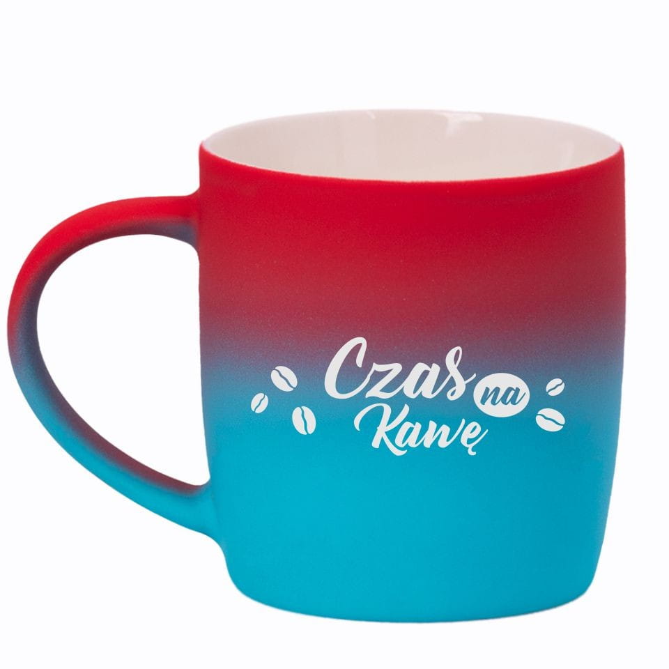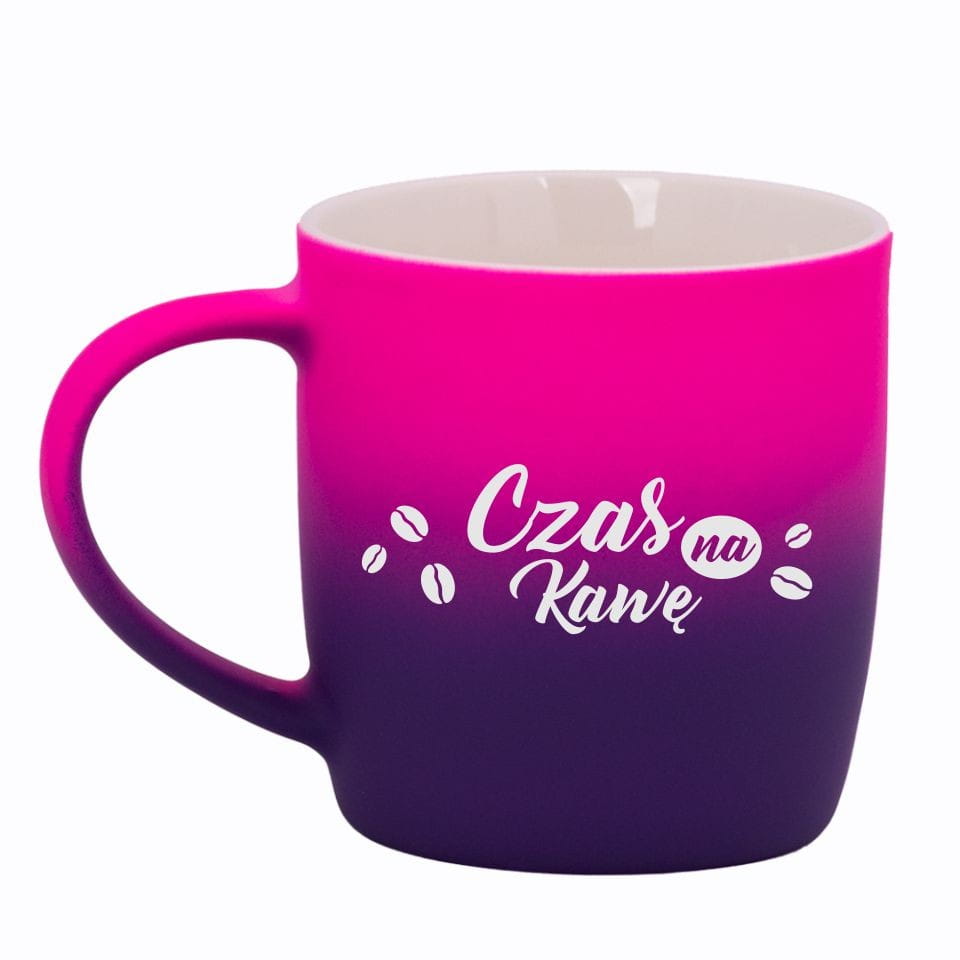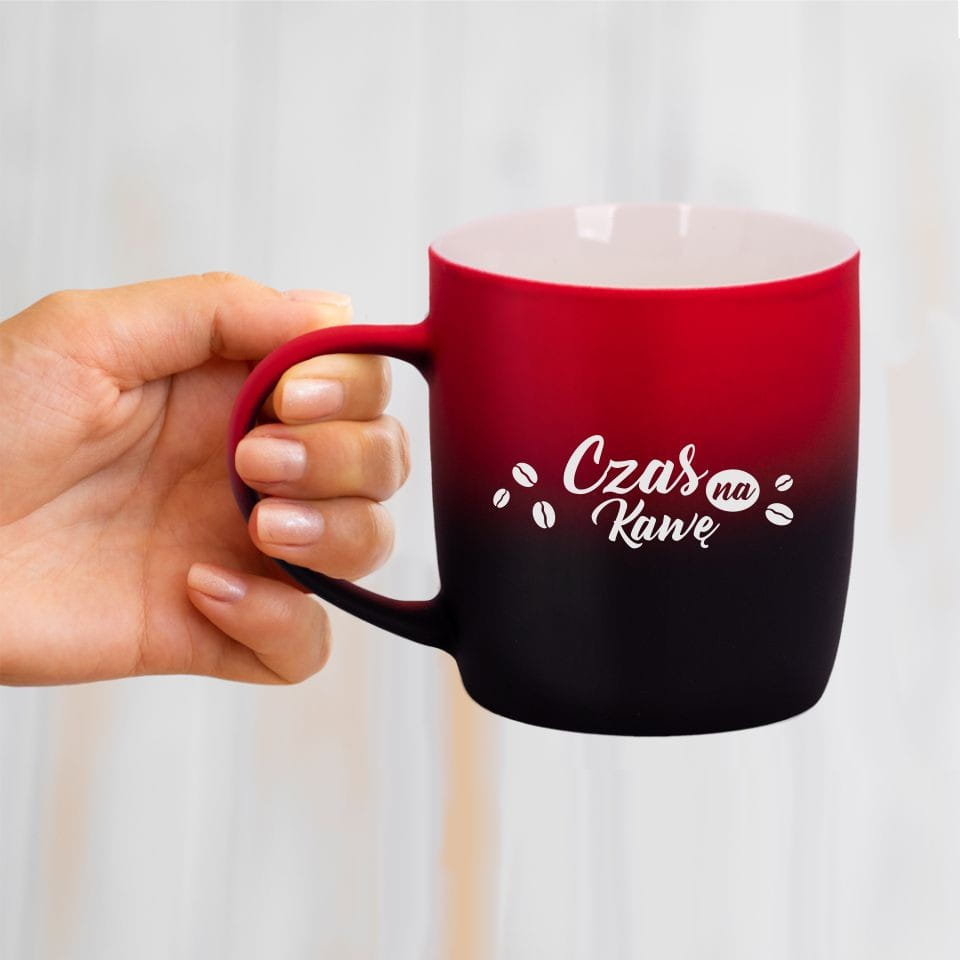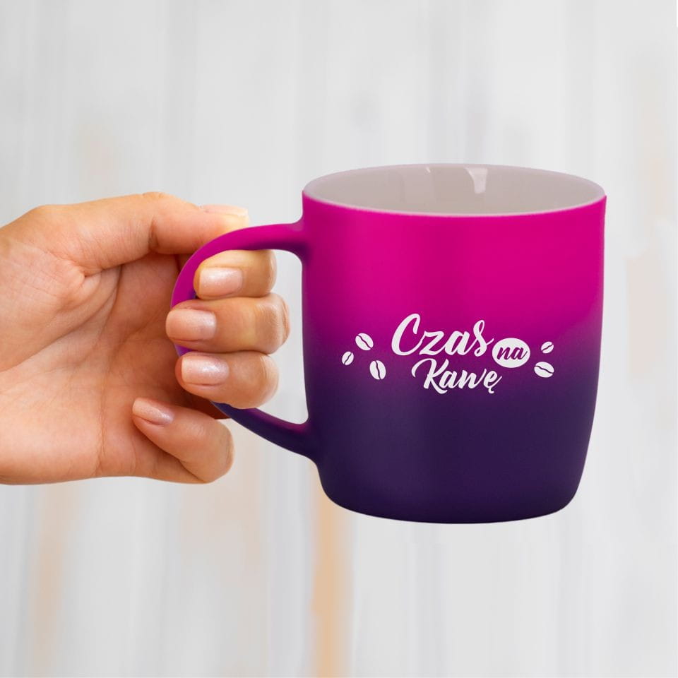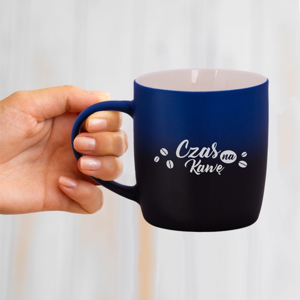 Jego zewnętrzna warstwa koloru przechodzi z jasnej w ciemną. Wnętrze jest jednokolorowe. Kubek jest matowy, miły w dotyku, z wygodnym uchwytem. Nadruk wykonany jest metodą laserową, a kolor graweru to biały.