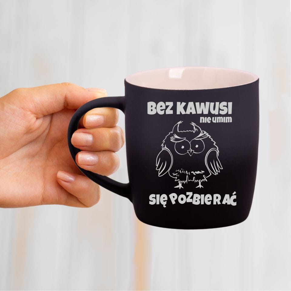 Jego zewnętrzna warstwa koloru przechodzi z jasnej w ciemną. Wnętrze jest jednokolorowe. Kubek jest matowy, miły w dotyku, z wygodnym uchwytem. Nadruk wykonany jest metodą laserową, a kolor graweru to biały.