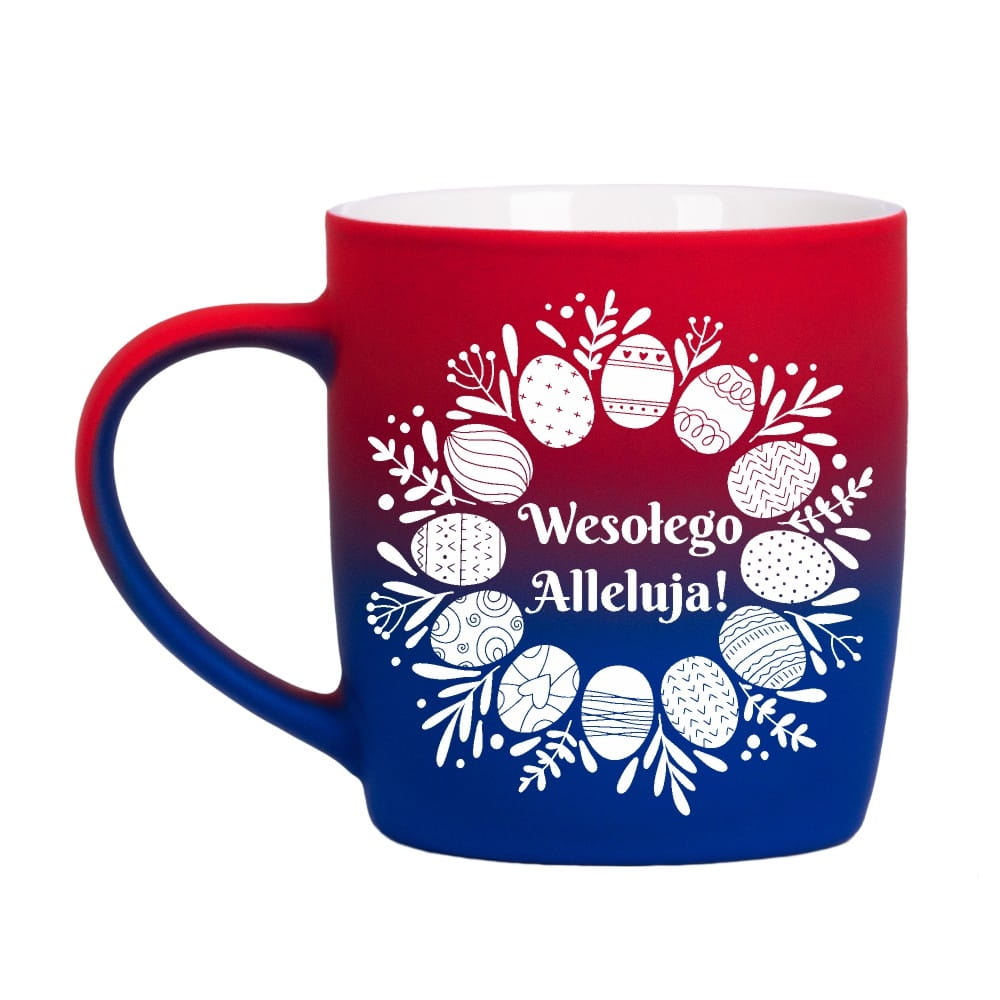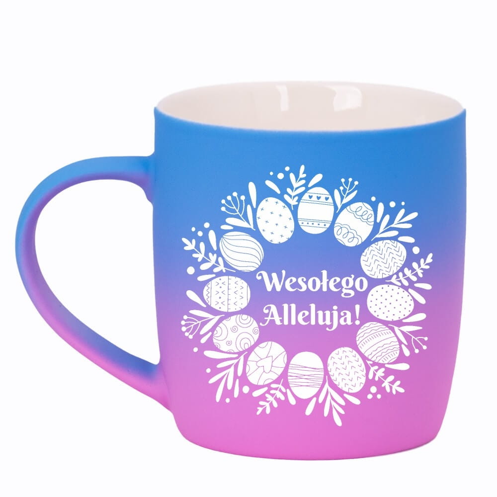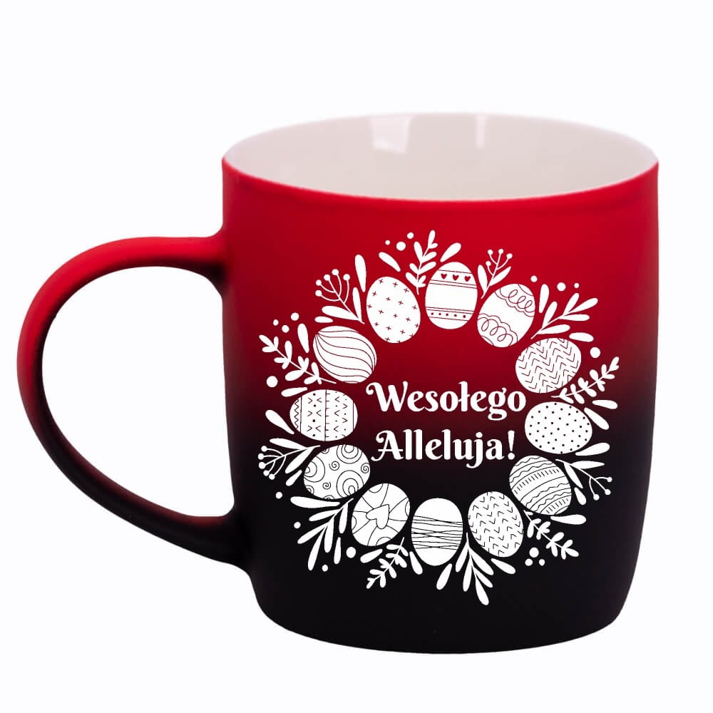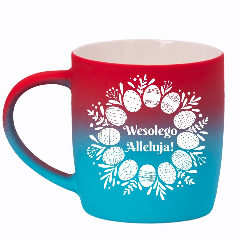 Jego zewnętrzna warstwa koloru przechodzi z jasnej w ciemną. Wnętrze jest jednokolorowe. Kubek jest matowy, miły w dotyku, z wygodnym uchwytem. Nadruk wykonany jest metodą laserową, a kolor graweru to biały.