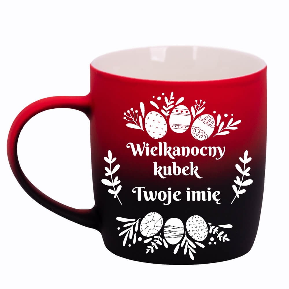 Kubek prezent na Wielkanoc - Czarno Czerwony - Imienny Damski