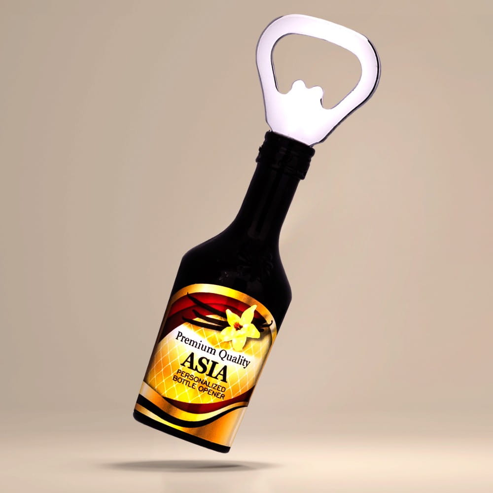 Dodatkowo posiada magnes, który pozwala umieścić go na lodówce. Każdy otwieracz posiada nadruk z wybranym przez klienta imieniem męskim lud damskim, w zależności od wybranego wzoru. Produkt świetnie nadaje się na prezent dla każdego smakosza trunków wysokoprocentowych.
