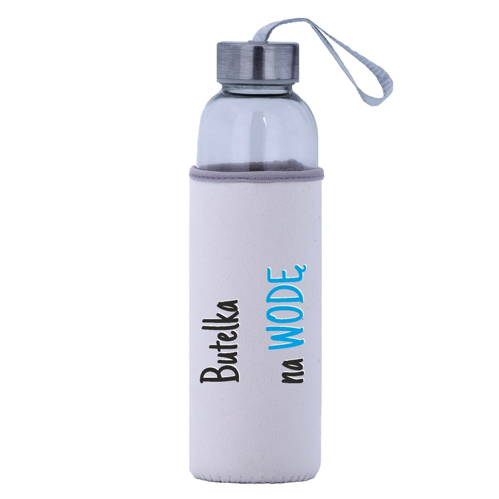 Szklana butelka 500ml z pokrowcem. Praktyczna szklana butelka na zimne napoje.