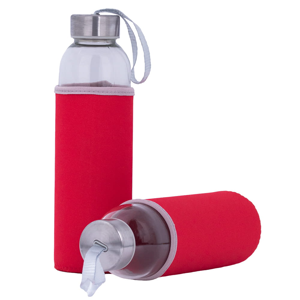 Szklana butelka 500ml z pokrowcem. Praktyczna szklana butelka na zimne napoje.