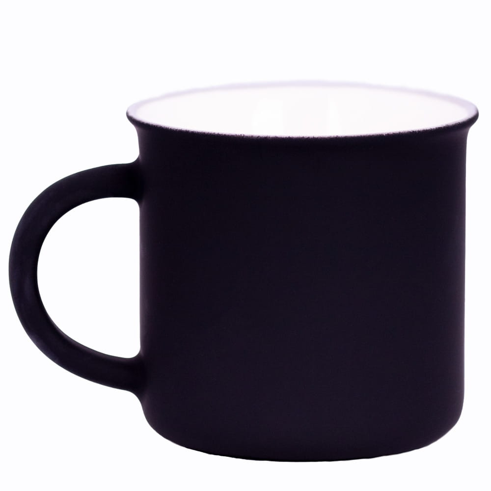 Kubek ceramiczny stylizowany na kubek retro PRL z wygrawerowanym metodą laserową hasłem i grafiką.