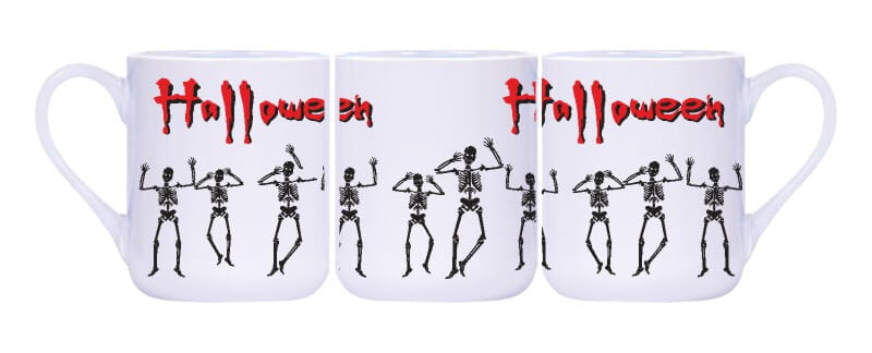 Na powierzchni tego kubka znajdziesz wiele ciekawych i klimatycznych wzorów stworzonych specjalnie na Halloween. Znajdziesz tu duchy unoszące się w mrocznym powietrzu, szkielety w grobowych postawach oraz czarownice na swoich miotłach, gotowe na nocne zaczarowania. Wszystkie te motywy wprowadzą Cię w nastrój tego wyjątkowego święta, które obchodzone jest w październiku.