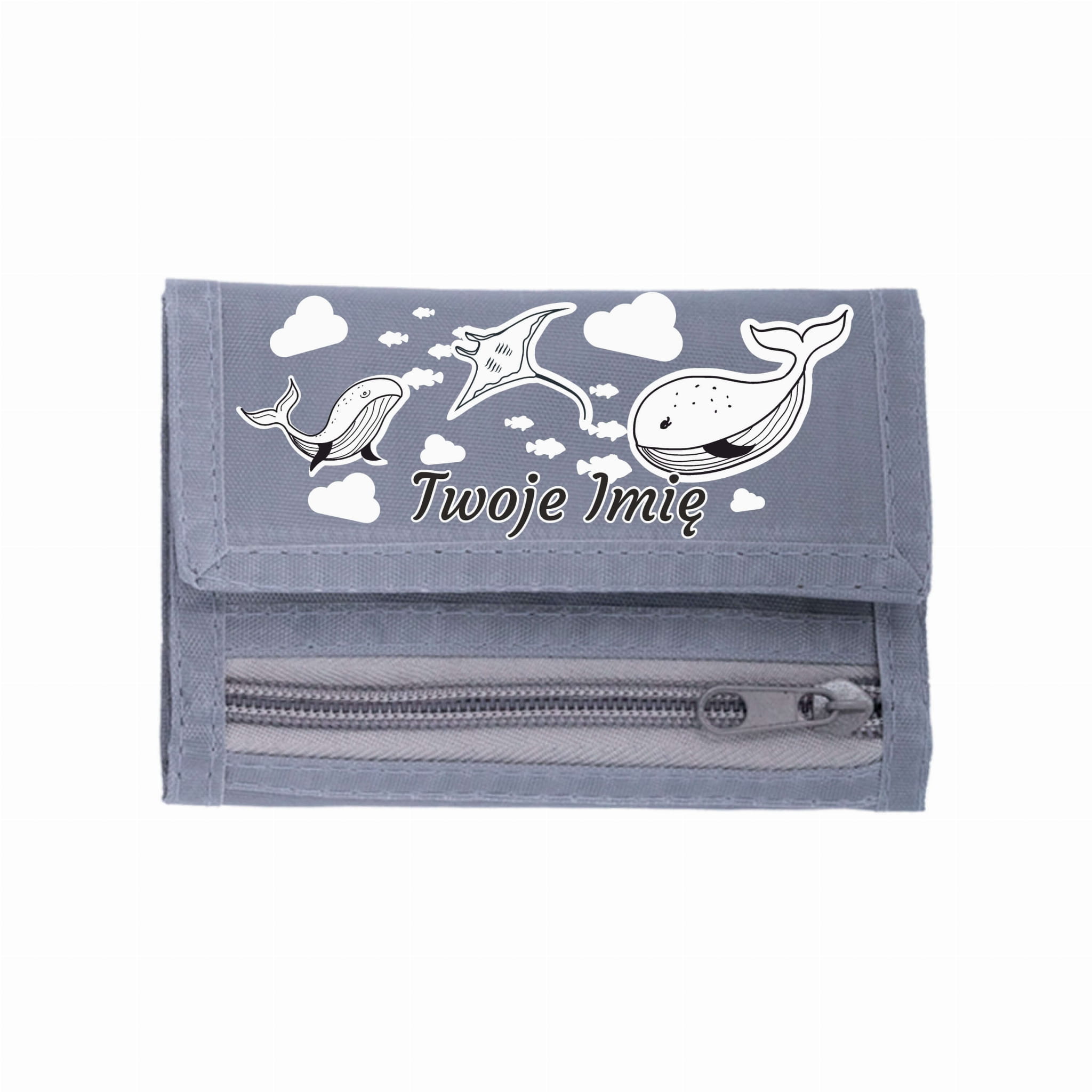 Portfel sportowy - Wieloryby - Imię Męskie Dzieci - Szary