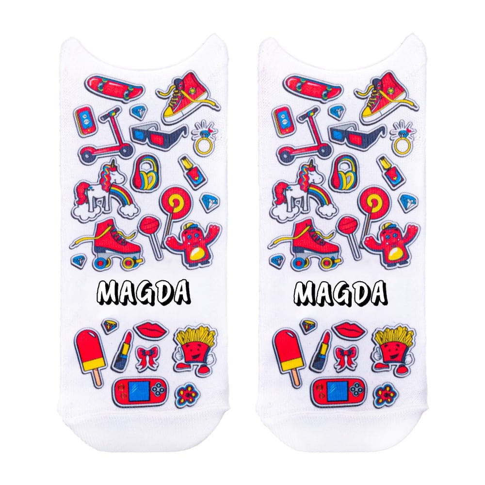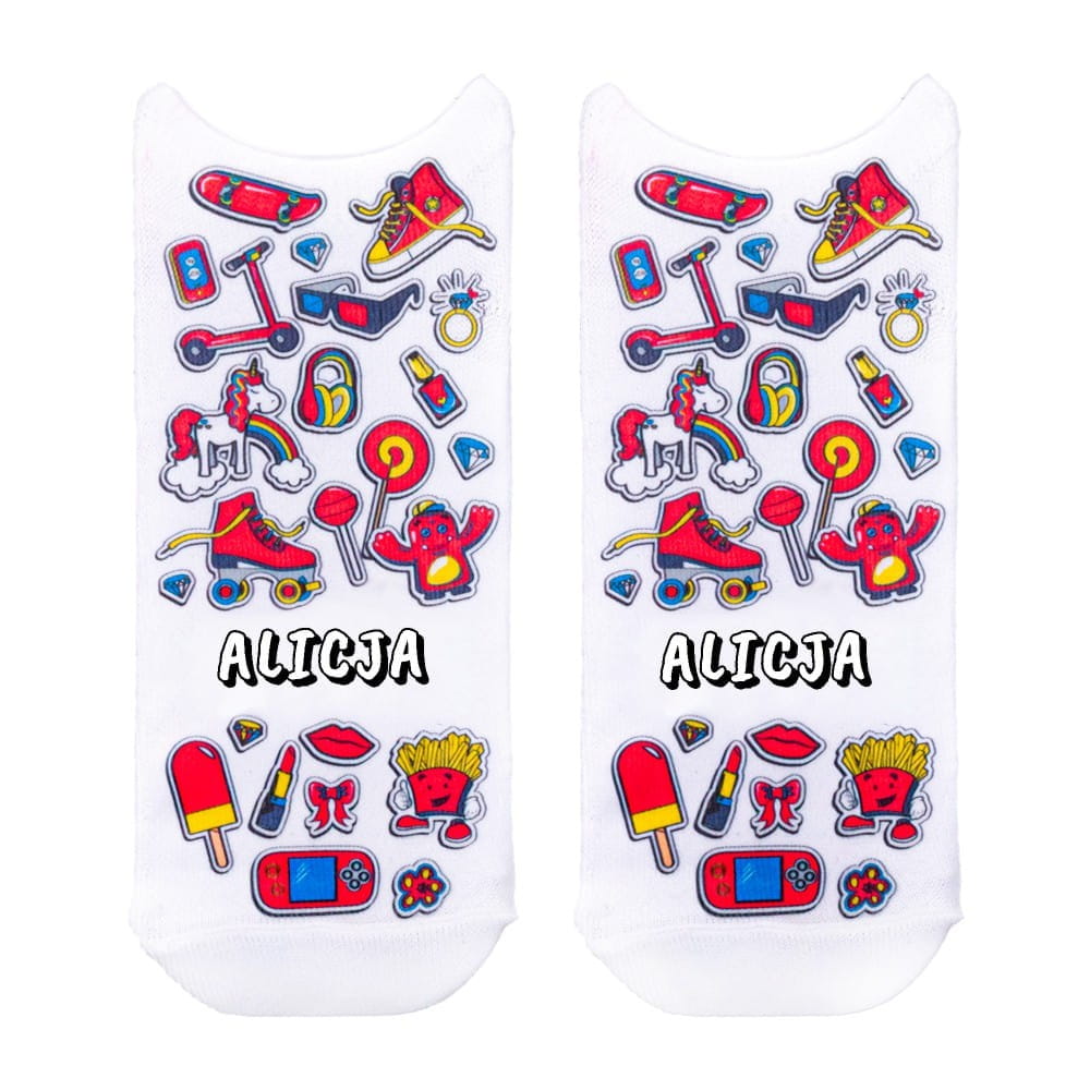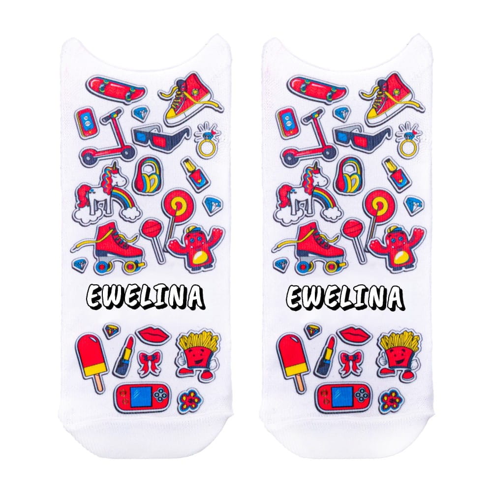 Każda para skarpetek poza oryginalnym wzorem posiada dodatkowo imię.