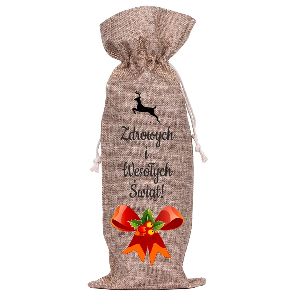PREZENT Worek na butelkę len - Wesołych świąt (122)