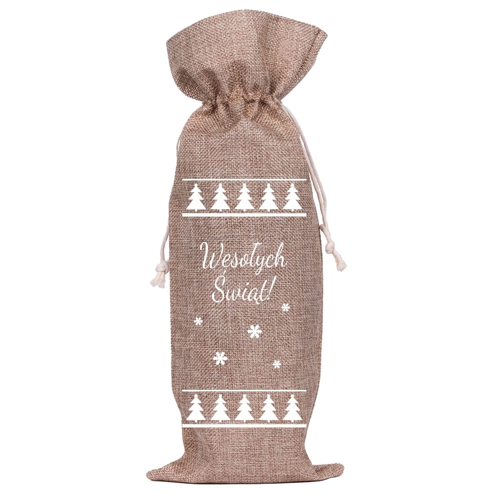 PREZENT Worek na butelkę len - Wesołych świąt (128)